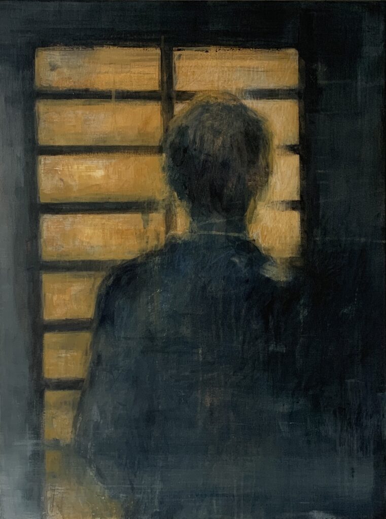 Het idee voor het schilderij ontstond uit vrij werk van Gonda. De schenker van het schilderij zag dit werk in het atelier van Gonda. Op verzoek van de schenker paste Gonda dit bestaande schilderij aan: een vrouw werd veranderd in een man en de lamellen van een raam werden tralies, zodat het werk direct verwees naar de wereld van Gevangenenzorg. Voor Gonda zelf was het een zoektocht naar betekenis: hoe verwerk je gevoelens van verlies, verdriet en rechtvaardigheid in beeld? Hoe breng je de worsteling van schuld en genade, van gebrokenheid en hoop, tot expressie?
